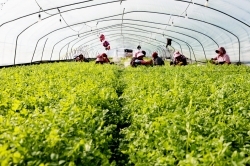 지하 100m 암반수 이용해 재배 의령군 자굴산(897m) 기슭에 자리한 가례면 밭미나리 비닐하우스에서 15…