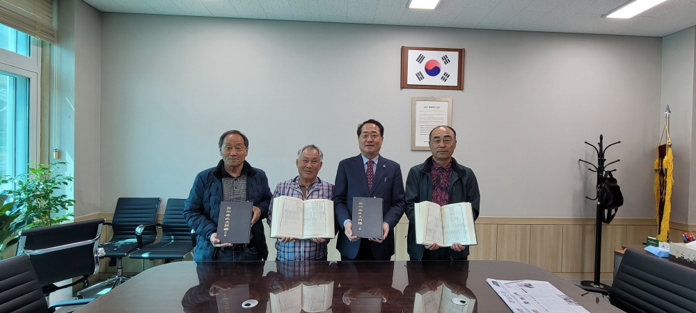 강신군 원장, “향토사 성씨 연구에 큰 도움 될 것" 의령의 91개 성씨 중 하나인 진주 강씨 문중이 의령문화원(원장 강신군)에 총 31권의 소중한 족보를 기증하며 지역 역사 연구와 문화유산 보전에 힘을 보탰다. 그동안 의령문화원에는 진주 강씨 청풍군수공파의 파보만 보관되어 있고, 진주 강씨 박사공파의 전체 족보가 없어 청풍군수공파 외 인물에 대한 정보를 파악하기에는 어려움이 있었다. 이번 족보 기증은 진주 강씨 후손들이 조상의 뿌리를 보존하고, 의령 지역의 역사와 문화를 널리 알리기 위해 부림면 단원리에 거주하고 계신 강종율 씨가 선뜻 기증 의사를 밝혀 진행되었다. 기증된 진주 강씨 박사공파 족보는 전질 31권으로 조선 시대부터 이어져 온 귀중한 자료로써, 의령문화원은 이를 체계적으로 보존하고 향후 향토사 연구에 활용할 계획이다. 진주 강씨 문중 관계자는 “우리의 뿌리를 후대에 전하고 지역 사회와 공유하는 것이 중요하다고 생각했다”며 “이번 기증이 의령 향토사 연구와 성씨 문화 발전에 보탬이 되길 바란다”고 밝혔다. 의령문화원 강신군 원장은 "기증된 족보는 의령 지역 성씨 연구뿐만 아니라 향토사 연구에 큰 도움이 될 것"이라며 "앞으로도 여러 집안의 족보 및 문집·사진 등 관련 자료를 적극적으로 수집하고 보관하여 연구에 활용할 계획이며 또한, 군민들에게 자료 기증에 관한 관심과 참여를 기대한다."고 말했다. 변경출 기자 사진...족보 기증 후 사진 촬영한 모습, 왼쪽부터 강신일씨, 강종율씨, 강신군 문화원장, 강상복씨