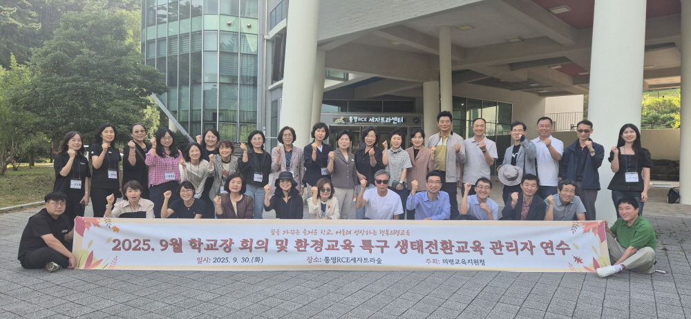 학교 안과 밖에서 실천할 수 있는 방안 모색 의령교육지원청(교육장 서회영)은 지난달 30일 통영RCE세자트라숲에서 의령 관내 학교장과 기관장이 참석한 가운데 ‘2025. 9월 학교장 회의’를 개최했다고 2일 밝혔다. 통영RCE세자트라숲에서 회의를 개최한 것은 기후 변화와 환경 재난에 대응하고 학교 안과 밖에서 실천할 수 있는 방안을 모색해 보기 위한 것이다. 학교장과 기관장은 자율장학 협의 시간을 통해 학교 교육과정 안에서 다양한 생태 전환교육 활동들을 운영하여 학생들이 자연스럽게 삶속에서 환경보호의 중요성을 이해하고 가슴으로 느끼며 실천할 수 있도록 노력하자며 뜻을 모았다. 이날 회의는 교육정책전달 회의와 전문 강사의 생태환경교육에 대한 이해 강의, 의령 환경특구사업에 대한 고찰, 통영RCE세자트라숲센터 라운딩, 요가 및 둘레길 걷기 등 다양한 활동들로 알차게 운영됐다. 또한, 새로 전입한 교장과 교육지원청 직원 간의 인사를 통해 학교와 교육지원청의 협력을 다지는 시간을 가졌다. 특히, ‘2025. 경남 의령 공동학교’에 대한 설명을 통해 새로 승진 및 전입한 교장선생님들의 이해를 돕고 적극적으로 학교 경영에 참여할 수 있는 장을 마련했다. 서회영 의령교육장은 “교육공동체의 정성으로 모아진 노력들이 학생들의 삶에 변화를 가져오고 지역의 발전으로 이어질 수 있다. 서로가 성실과 헌신의 마음가짐으로 의령교육의 발전을 위해 함께 나아가자”며 지성능화(至誠能化)를 강조했다.