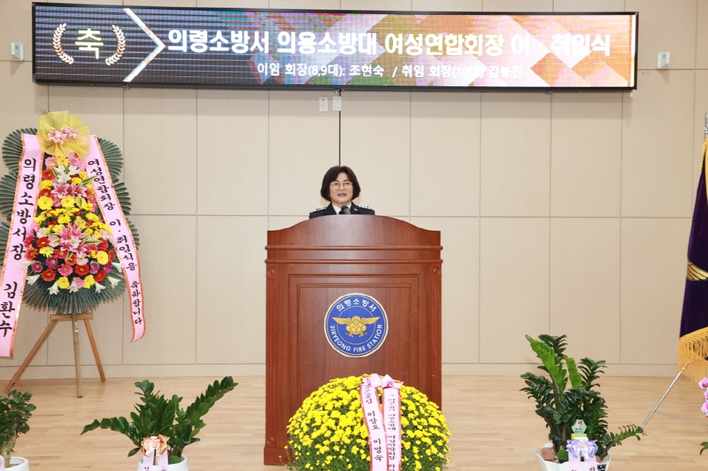 의용소방대연합회 여성연합회 김봉진 회장 “더 안전하고 더 행복한 의령을 위해 최선” 의령소방서 의용소방대연합회 여성연합회 제10대 회장에 여성의용소방대 김봉진(60˓궁류면)대장이 취임한지 10월 11일자로 16일 됐다. 지난 9월 26일 의령소방서 3층 강당에서 열린 이˓취임식에는 오태완 의령군수, 김규찬 의령군의회 의장을 비롯한 군의원, 각 기관 및 사회 단체장, 김봉선 경상남도 의용소방대연합회 회장, 시˓군 여성연합회 회장, 송재규 의령의용소방대연합회 회장, 의령의용소방대여성연합회 회원 등 150여명이 참석해 축하했다. 김 회장은 취임사에서 “의령군 의용소방대연합회 여성연합회 회장으로 막중한 소임을 맡게 되어 한없는 영광과 무거운 책임감을 느낀다”며 “우리 의용소방대는 오랜 세월동안 군민의 생명과 재산을 지키는 최 일선에서 묵묵히 봉사해 왔다. 앞으로 저 역시 대원 여러분과 함께 더 전통을 이어가며 더 안전하고 더 행복한 의령을 만들기 위해 최선을 다하겠다. 그리고 대원 상호간에 화합과 단결을 바탕으로 누구나 의용소방대임을 자랑스럽게 여길 수 있는 연합회를 만들어 가겠다.”고 강조했다. 소방대원 남여 대표는 “의용소방대원 일동은 신임 연합회 회장을 중심으로 단결과 화합을 더욱 굳건히 하여 군민이 신뢰하는 의용소방대로 거듭날 것을 다짐 한다”는 결의문을 낭독했다. 김 회장은 2013년에 의령소방서 궁류면 여성의용소방대에 입대한 올해로 12년차 경력의 여성의용소방대원이다. 지난 3월 열린 ‘제4회 의용소방대의 날’ 기념식에서는 도지사 상을 수상하는 등 의용소방대원으로서 사회적 역할에 최선을 다하고 있다. 의용소방대연합회는 관내 13개 읍˓면의 의용소방대로 구성되어 있으며, 500여명의 대원들이 재난예방과 신속한 대응 등을 위해 활동하고 있다. 김 회장의 약력이다. ▲K-푸드 저염장 장아찌 의령본가 대표 ▲의령소방서 궁류면여성의용소방대 입대(2013년) ▲궁류면 자원봉사협의회 회장(2015년) ▲궁류면 벽계마을 이장(2018년~2019년) ▲궁류면 이장단 사무장(2019년) ▲의령군 이장연합회 사무국장(2019년) ▲의령군 자원봉사협의회 부회장(2020년) ▲대구 음식산업박람회 식품의약품안전처장관 최우수상 수상(2022년) ▲대한민국 국제요리(제과)경연대회 한식요리 금메달(2023년) ▲대한민국 국제요리(제과)경연대회 심사위원 위촉(2023년) ▲의령소방서 여성의용소방대장 임명(2022년)▲한국양봉협회 경상남도 감사(2024년) 변경출 기자 사진 1.. 김봉진 회장이 취임사를 하는 모습 사진 2...국제요리 경연대회 심사위원 활동 모습 사진 3...국제요리 경연대회 금메달 수상 모습