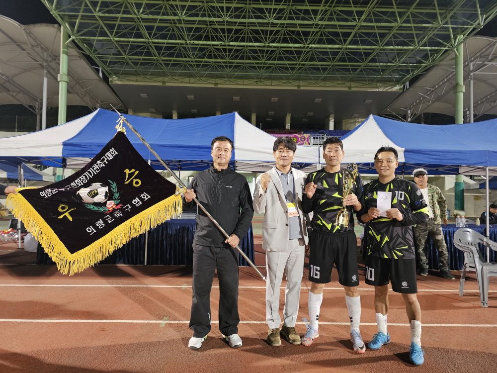 우승=의령군청B팀, 준우승=농어촌공사팀 최우수 선수=진종엽 선수 다득점 선수=이호현 선수 의령군 기관단체 간의 화합과 발전을 도모하는 ‘제42회 의령군축구협회장기 기관단체 축구대회‘가 지난 24일, 의령공설운동장에서 성황리에 막을 내렸다. 의령군축구협회(회장 주성현)가 주최한 이번 대회는 올해로 42회째를 맞이하며, 관내 기관단체 간의 유대 강화와 지역 사회 발전에 기여하기 위해 열렸다. 의령군청(A,B팀), 의령복지마을, 의령교육지원청, 농·축협, 농어촌공사(리뉴어스 포함) 등 지역 내 6개 팀 200여 명이 참가해 뜨거운 승부전을 펼쳤다. 특히, 결승전에서는 의령군청B팀과 농어촌공사 팀이 마지막까지 손에 땀을 쥐게 하는 접전을 벌였으며, 그 결과 의령군청B 팀이 최종 우승을 차지했다. 농어촌공사 팀은 준우승, 농·축협팀과 의령복지마을 팀이 공동 3위를 차지했다. 최우수선수상에는 의령군청B 팀의 진종엽 선수, 다득점 상에는 농어촌공사 팀의 이호현 선수가 각각 차지했다. 변경출 기자 사진 1...우승을 차지한 의령군청B팀의 기념사진 촬영 모습 사진 2...왼쪽부터 노태필, 주성현 회장, 강상해, 황현태 선수