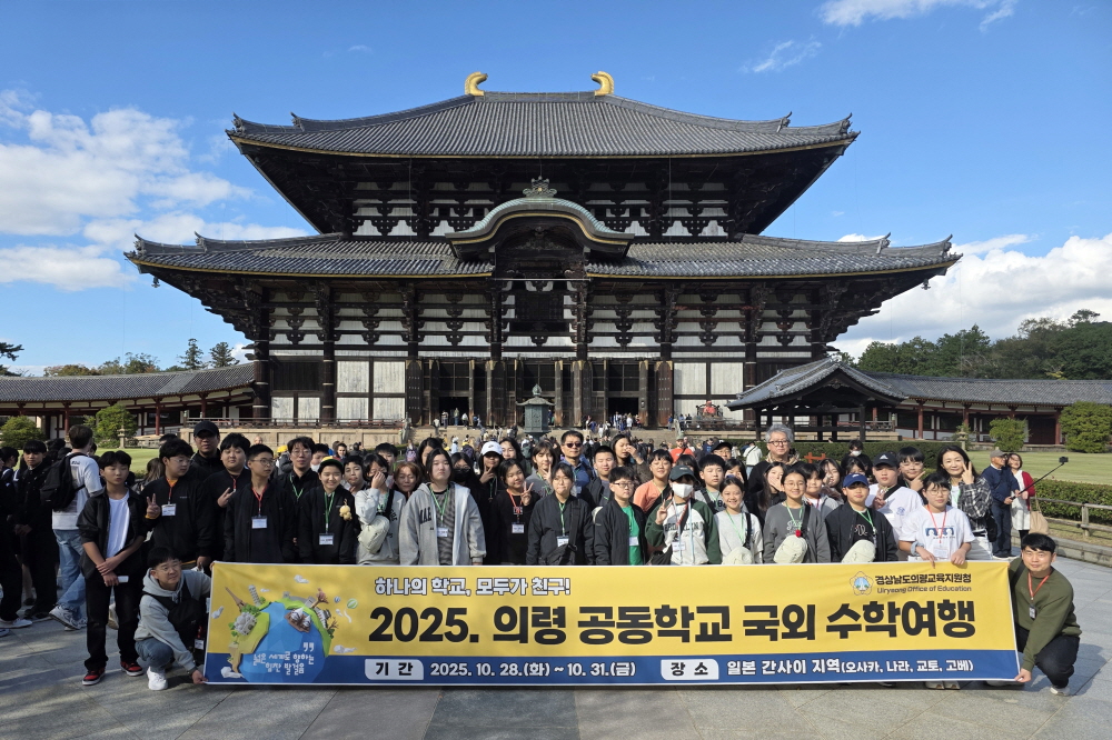 세계 시민 의식과 공동체 역량을 키우는 데 중점 일제 강점기의 항일 역사 현장 탐방 정신 되새겨 의령교육지원청(교육장 서회영)은 10월 28일부터 31일까지 3박 4일간의 일정으로 일본 간사이 지방에서 ‘2025. 의령 공동학교 국외 수학여행’을 실시했다고 밝혔다. 이번 수학여행은 ‘하나의 학교, 모두가 친구!’를 주제로 의령지역 11개의 작은 학교 6학년 학생 36명과 인솔교사들이 함께 떠난 글로벌 체험학습으로, 다양한 문화와 과학, 역사 경험을 통해 학생들의 세계 시민 의식과 공동체 역량을 키우는 데 중점을 두었다. 특히, 교토의 윤동주 시비와 귀(코)무덤을 방문해 일제 강점기의 항일 역사 현장을 직접 탐방하며 우리 민족의 아픈 역사를 되새기는 뜻깊은 시간을 가졌다. 학생들은 윤동주 시인의 삶과 작품을 통해 평화와 인류애의 가치를 새롭게 되새기고, 과거의 아픈 역사를 딛고 현재의 평화를 지켜나갈 책임 있는 시민으로 성장할 것을 다짐했다. 이 밖에도 ▲역사 탐방(교토 청수사, 나라 동대사, 뵤도인, 오사카성 등) ▲과학 체험학습(카이유칸 수족관, 롯코산, 메리켄파크, 유니버설 스튜디오 재팬 체험) 등 전문 인솔자의 안전한 지도로 다채로운 배움을 경험했다. 서회영 교육장은 “이번 국외 수학여행은 지난해 대만에 이어 두 번째로 추진된 글로벌 체험학습으로 역사를 배우고 평화를 생각하는 살아 있는 교육의 장이 되었다.”며 “앞으로도 관내 작은 학교 학생들이 더 넓은 세상을 배우고 세계 시민으로 성장할 수 있도록 다양한 해외 체험 기회를 지속적으로 마련하겠다.”고 밝혔다.