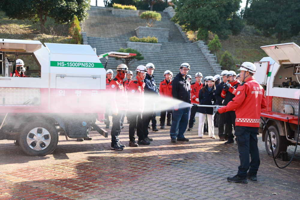 골든타임 현장 대응력 강화 의령군은 지난 11일과 13일, 의령관문공원 일원에서 공무원과 산불전문예방진화대원의 합동훈련을 실시했다고 14일 밝혔다. 이번 훈련은 산불 발생 초기 ‘골든타임(30분)’ 내 주불 진화를 목표로 현장 대응력을 강화하기 위해 마련됐다. 훈련에는 산림휴양과 직원 16명과 산불전문예방진화대원 40명 등 총 56명이 참여했으며, 진화차·용수공급차·무전기 등 장비 운용과 산불 규모별 대응, 통신체계 숙달 훈련이 진행됐다. 안전관리과는 산불진화 중 안전·보건교육도 함께 실시했다. 산림휴양과 관계자는 “이번 훈련으로 신속하고 체계적인 현장 대응체계를 확립하고 공무원과 진화대원 간 협업 능력을 강화할 수 있었다”고 말했다. 의령군은 17일부터 야간 산불 초기 대응을 위해 산불전문진화대를 운영한다. 야간 진화대는 1조 5명으로 구성되어 오후 1시부터 10시까지 활동하며, 야간 소각행위 감시와 산불 발생 시 신속 대응을 담당한다. 사진...산불 진화 합동 훈련 모습