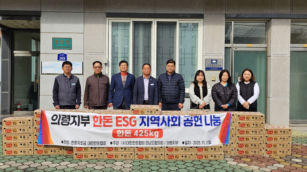 대한한돈협회 의령군지부는 지역 복지시설과 소외계층을 대상으로 ‘이웃사랑 한돈 나눔’을 실시했다고 20일 밝혔다. 한돈협회는 한돈 85박스(425kg)를 소망의집, 일붕실버랜드 등 관내 복지시설 17곳에 전달한데 이어 지역 주민들이 쉽게 이용할 수 있도록 의령읍과 부림면에 설치된 ‘나눔 냉장고’에 800만 원 상당의 한돈을 채워 넣어 온정을 나눴다. 채영국 지부장은 “겨울을 앞두고 어려운 이웃들의 식탁에 작은 도움이 되길 바란다”며 “지역사회와 함께하는 한돈협회가 되도록 나눔 활동을 지속하겠다”고 말했다.