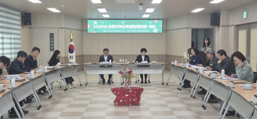 의령군과 협력 강화를 통한 지원과 의령교육 발전 도모 서회영 교육장, “행복 의령교육이 실현될 수 있도록 최선” 의령교육지원청(교육장 서회영)은 지난 9일, 2층 대회의실에서 의령교육발전 방향 모색과 교육 현안 협의를 위한 '2025년도 의령지역교육행정협의회 정기회'를 개최했다고 10일 밝혔다. 의령지역교육행정협의회는 경상남도 교육행정협의회 운영 조례에 따라 의령교육지원청 교육장과 의령군수가 공동의장으로, 관계공무원, 초·중학교장 등 총 12명의 위원으로 구성되어 지역사회와 교육발전을 위한 협력 사항을 논의하고 다양한 정책들의 연계 및 협력 추진을 위해 매년 개최하고 있다. 이날 협의회는 서회영 교육장과 최진회 부군수를 비롯한 위원 10명과 관계공무원 등 20여명이 참석한 가운데 ▲의령의 얼, 글로벌 역량으로 자라다 ▲관내 체육시설(학교 및 공공시설) 상호 사용료 무료화 협약. ▲안정적인 교육경비 지원 확대를 통한 의령교육발전 도모 ▲의령교육지원청 청사 진입도로 정비 및 안전 개선 협조 ▲교육발전특구 2차 시범지역 운영에 따른 협조 요청 ▲의령 고향사랑기부제 안내 및 협조 등 교육현안에 대하여 심도 깊은 의견을 나누고, 향후 협력방안에 대하여 논의했다. 서회영 교육장은 "이번 협의회를 통해 의령교육지원청과 의령군이 소통과 신뢰를 바탕으로 교육수요자가 만족하는 교육환경을 조성하여 우리 아이들을 위한 실질적인 교육프로그램 개발과 실행을 통해 행복의령교육이 실현될 수 있도록 최선을 다하겠다."고 말했다. 최진회 부군수는 "이번 협의회 실시로 기관 간의 소통과 협력을 도모하고, 의령군민으로서의 자긍심과 애향심이 고취될 수 있도록 학생, 학부모 등이 만족하는 교육환경 조성을 위해 노력하겠다"고 강조했다. 사진 1...의령지역교육행정협의회 회의 모습 사진 2...회의 후 기념 촬영한 모습