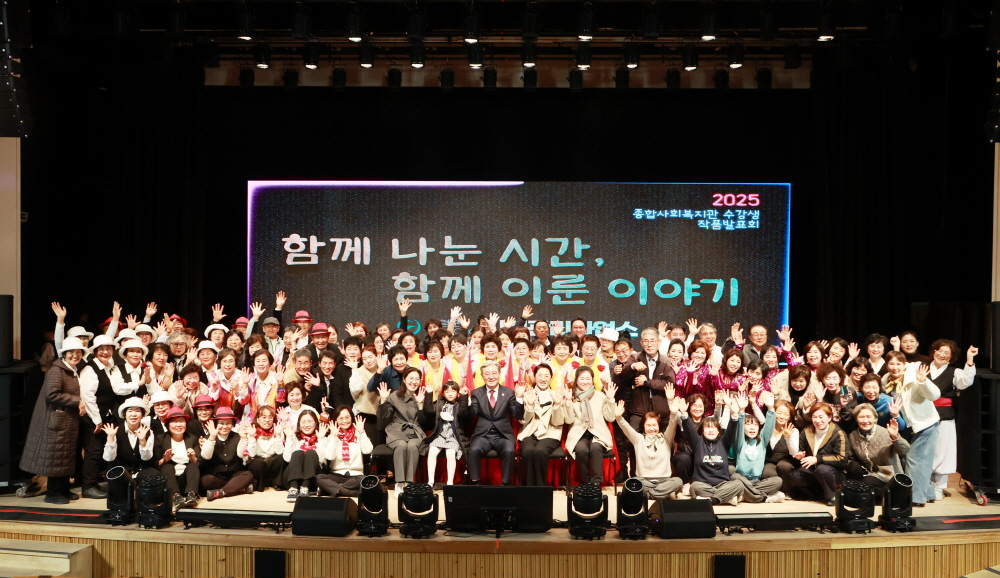 1년간 갈고 닦은 실력 선보여 의령군은 의령군민문화회관에서 열린 ‘2025년 수강생 작품발표회’가 군민들의 따뜻한 관심 속에 성황리에 마무리되었다고 12일 밝혔다. ‘함께 나눈 시간, 함께 나눈 이야기’를 주제로 진행된 이번 발표회는 올해 복지관에서 배움을 이어온 수강생들이 그동안 갈고 닦은 실력을 무대와 전시를 통해 선보이며 큰 감동을 전했다. 무대 공연에서는 고고장구, 노래교실, 통기타, 힐링요가 등 15개 팀의 다양한 프로그램 수강생들이 1년의 성장을 자신 있게 펼쳐 보였다. 공연장 곳곳에서는 수강생을 응원하는 가족과 군민들의 따뜻한 박수가 이어지며 화합의 분위기를 더했다. 또 전시회는 도자기공예, 서예, 가족 머리 깎기, 천아트 등 11개 팀, 350여 점의 작품으로 구성되어 관람객들의 눈길을 사로잡았다. 군 관계자는 “이번 발표회는 수강생 한 분 한 분의 성장이 군민 모두의 기쁨이 되는 의미 있는 자리였다”며 “앞으로도 군민의 삶 속에 배움과 나눔이 자연스럽게 이어지도록 다양한 프로그램을 운영 하겠다”고 말했다. 한편, 종합사회복지관은 12월 15일부터 2026년 1기 프로그램 수강생을 모집한다. 군민 누구나 참여할 수 있는 48개 프로그램이 운영될 예정이다. 신청은 종합사회복지관 방문 또는 온라인이나(570-2820)으로 하면 된다. 사진...작품발표회 후 기념 촬영한 모습
