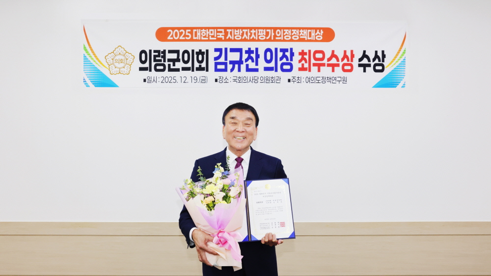 실효성 있는 정책·입법 활동 인정 의령군의회는 김규찬 의장(라 선거구)이 국회에서 열린 ‘2025 대한민국 지방자치평가 의정정책대상’ 시상식에서 기초의회 부문 ‘최우수상’을 수상했다고 26일 밝혔다. 김 의장은 제9대 의령군의회 전·후반기 의장으로 선출되어 의회 운영 전반을 이끌어 오고 있는 6선 의원이다. 이번 수상은 여의도정책연구원이 주관하여, 조례 제·개정과 예산·행정사무감사, 주민의견 수렴, 의정의 투명성과 책임성, 정치적 리더십 등을 종합 평가했다. 특히, 올해는 형식적인 서류 제출보다 실제 의정 성과를 중심으로 질의서·평가서·증빙자료를 정밀 심사하는 방식이 강화되면서, 이번 수상이 보여주기 식이 아닌 실제 의정활동으로 검증된 결과라는 점에서 의미를 더한다. 김 의장은 ‘군민 속으로 한발 더, 소통하는 의회’를 슬로건으로 내걸고 회의 과정을 유튜브로 생중계하며, 행정사무감사 전에 ‘군민 의견접수’를 정례화해 주민이 직접 의정에 참여·감시하는 구조를 만들었다. 매주 ‘등원일 회의’를 통해 전 의원이 주요 현안을 공유하도록 한 것 역시 의회 운영의 책임성과 투명성을 높인 사례로 평가된다. 입법 활동에서도 주민이 체감할 수 있는 변화를 목표로 했다. 김 의장은 「의령군 사무의 공공기관 위탁 및 대행에 관한 조례」, 「의령군 야간관광 활성화 지원 조례」, 「의령군 디지털 성범죄 예방 및 피해자 지원 조례」, 「출산의 날 기념에 관한 조례」 등을 발의해 공공성·안전·지역소멸 대응을 아우르는 입법 성과를 쌓았으며, 이 같은 조례 활동이 이번 평가에서 주요한 점수 요소로 작용한 것으로 보인다. 또 자유발언을 통해 중장기 전략을 제시해 온 점도 눈에 띈다. 김 의장은 의장석을 내려와 ‘스마트 융복합 스포츠센터’ 조성, ‘체류형 관광 및 정주 여건 개선’ 방안을 직접 제안하며 동부·서부권 균형발전과, 낮과 밤 모두 활력이 있고, 아이 키우기 좋은 도시 의령을 정책 방향으로 제시했다. 이러한 발언들이 군의 미래 비전을 설계하고 실행을 촉구하는 역할을 하고 있음을 보여준다는 평가다. 김 의장은 “이번 수상은 제 개인이 아니라 의령군의회를 믿고 지지해 주신 군민 여러분과 함께 만들어 온 결과로서 군민의 삶 속에서 문제를 찾고, 이를 조례와 정책으로 풀어내는 지방의원을 계속해서 목표로 삼겠다”며 “앞으로도 형식보다 실질을, 말보다 실천을 앞세워 군민과 함께 지방자치를 완성해 가겠다”고 소감을 밝혔다. 사진...김규찬 의장