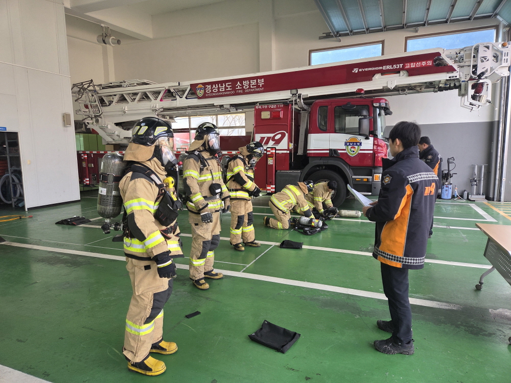 탄력적 현장대응체계 구축 의령소방서(서장 강두훈)는 지난 10일부터 13일까지 현장 대원을 대상으로 2026년 상반기 소방전술훈련평가를 실시한다고 12일 밝혔다. 주요 내용은 방화복 착용, 공기호흡기 장착 및 비상호흡법, 수직구조, 심폐소생술 및 기관내 삽관·자동제세동기 사용 등이다. 소방전술훈련평가는 각종 재난상황에 맞는 탄력적 현장대응체계 구축과 현장 활동 표준기법의 숙달을 통한 전문소방대원 육성과 현장대응능력 강화를 위해 매년 2회 시행된다. 강두훈 소방서장은 “소방전술 역량을 키우는 것은 재난 현장에서 안전과 직결된다”며 “이번 평가가 자신과 동료, 국민의 안전을 지키기 위해 부족한 점을 보완하는 계기가 되길 바란다”고 말했다.