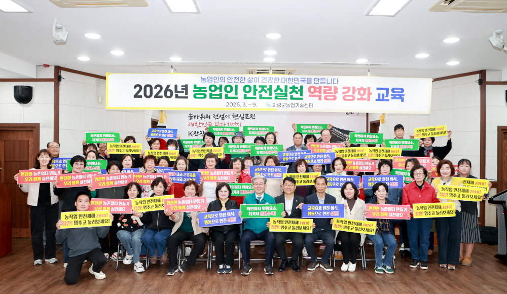 마을별 안전수칙 전파 및 현장 지도 의령군은 농업기술센터 3층 교육장에서 한국생활개선의령군연합회 회원 46명을 대상으로 ‘농업인 안전리더 육성 교육’을 실시했다고 2일 밝혔다. 이번 교육은 농촌진흥청 ‘농업인 안전실천 역량강화 교육’의 일환으로, 경상남도농업기술원·의령소방서·의령군농업기술센터 등 분야별 전문가가 참여해 농작업 재해 예방, 심폐소생술(CPR) 및 응급처치, 보호구 착용법 등을 실습 중심으로 진행됐다. 교육에 참여한 회원들은 지역 농업인의 생명과 안전을 지키는 안전리더로서 역할 수행을 다짐했다. 농업기술센터 관계자는 “농업은 재해율이 높은 분야인 만큼 농업인 스스로의 안전의식이 중요하다”며 “앞으로도 안전한 영농환경 조성을 위해 지속적인 교육과 지원을 이어 가겠다”고 말했다. 한편, 의령군은 ‘농업인 안전 365 캠페인’도 병행 추진 중이며, 이번에 양성된 안전리더들은 여름철 온열질환 예방 활동과 함께 마을별 안전수칙 전파 및 현장 지도를 맡을 예정이다. 사진...농업인 안전리더 육성 교육 모습