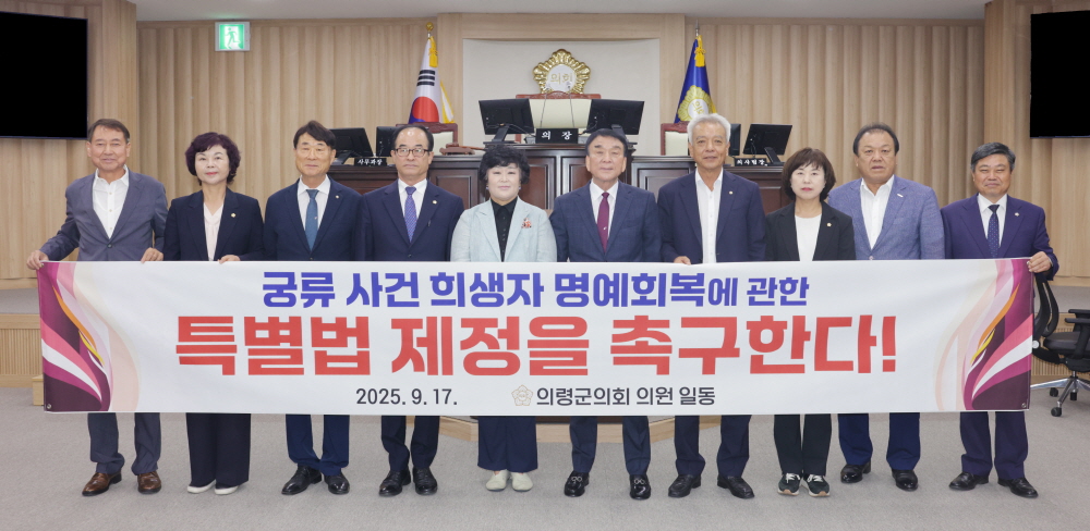 희생자 명예회복에 관한 특별법 제정 촉구 의령군의회는 17일 개회한 제294회 임시회 제1차 본회의에서 황성철 의원이 대표 발의한 ‘궁류 사건 희생자 명예회복에 관한 특별법 제정 촉구 대정부 건의안’을 만장일치로 채택했다고 밝혔다. 이 사건은 1982년 4월 26일, 의령경찰서 궁류지서에 근무하던 우범곤 순경이 동거녀와 말다툼을 벌인 뒤 예비군 무기고에서 소총과 수류탄을 탈취, 저녁 8시 30분부터 8시간동안 미친 광기를 부리며 4개 마을(평촌, 운계, 압곡, 토곡) 주민들에게 수류탄을 터뜨리고 무차별 총기를 난사해 56명이 숨지고 34명이 부상을 입었던 비극적인 사건이다. 사건은 경찰의 인사관리 부실과 무기고 관리 소홀, 업무태만이 초래한 참사로 평가된다. 당시 군부 정권의 언론 보도 통제로 사건이 은폐 되면서 피해자와 유가족들은 40여 년간 침묵 속에서 고통 받아 왔다. 의령군은 국·도·군비 30억 원을 투입해 ‘의령 4·26 추모공원’을 조성하고 2024년 4월, 42년 만에 첫 합동 위령제를 거행했다. 올해 두 번째 위령제에는 김성희 경남경찰청장이 현장을 찾아 피해자와 유가족들에게 진심 어린 사과를 했다. 하지만 추모공원 관리와 피해자 지원을 하기에는 열악한 지방 재정의 한계가 있어 의령군의회는 특별법 제정을 통한 지원 대책 수립을 정부에 촉구하고 있다. 김규찬 의령군의회 의장은 “국가는 특별법 제정을 통해 궁류 사건에 대한 책임을 다해야 하며 유가족들의 아픔을 감싸야 한다”고 강조했다. 건의안을 대표 발의한 황성철 의원도 “궁류 사건은 개인의 일탈이 아닌 국가의 명백한 과실로 발생한 참사”라며 “희생자와 유가족들이 더 이상 방치되어서는 안 된다”고 밝혔다. 의령군의회는 채택한 건의안을 정부기관과 국회, 여야 정당에 공식 전달했다. 사진...특별법 제정을 정부에 촉구하는 모습