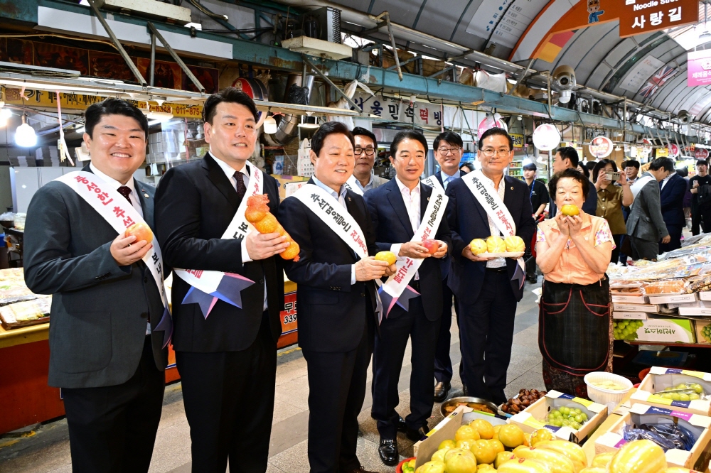 전통시장 구매물품 복지시설 전달하고 애로 사항 청취 경상남도의회는 최학범 의장이 민족 최대의 명절인 추석을 앞두고 김해 동상시장과 김해시 장애인종합복지관을 차례로 방문하여 민생 현장을 두루 살폈다고 2일 밝혔다. 이날 방문은 최학범 의장을 비롯해 박완수 경상남도지사, 최동원 도의원(김해3, 국민의힘), 주봉한(김해5, 국민의힘), 이시영(김해7, 국민의힘), 신대호 김해시부시장 등 관계자들도 함께했다. 최 의장은 먼저 경기침체와 물가상승 등으로 어려움을 겪는 동상시장을 돌며 추석 성수품 물가를 점검하고, 전통시장 상인 및 시장을 찾은 도민들과 추석 명절 안부 인사를 나눴다. 이어 전통시장 소비촉진을 위해 전통시장 온누리상품권을 이용해 과일, 채소, 전 등 다양한 물품을 구매하고, 시장 상인들의 애로사항을 청취하고 격려했다. 최 의장은 “전통시장은 지역경제의 뿌리이자 오랜 세월 서민의 정서가 깃들어 있는 생활 터전으로 도의회는 전통시장의 활력을 불어넣기 위한 정책적 지원을 아끼지 않겠다”며 “다가오는 추석 명절 장보기는 가족과 함께 품질 좋고 저렴한 전통시장을 이용해달라고” 말했다. 최 의장은 또 전통시장에서 구매한 물품을 김해시 장애인종합복지관을 방문해 전달하고, 입소 장애인들과 따뜻한 대화를 나누며 명절 인사를 전했다. 시설 관계자들과의 간담회를 통해 복지시설 운영 현장의 애로와 건의사항을 경청하고 “어려운 시기 사회복지시설의 역할이 도민의 삶의 질을 높이는 데 무엇보다 중요하다”며 “장애인 복지지원 강화를 위해 의회와 집행부가 함께 힘을 모으겠다”고 말했다.