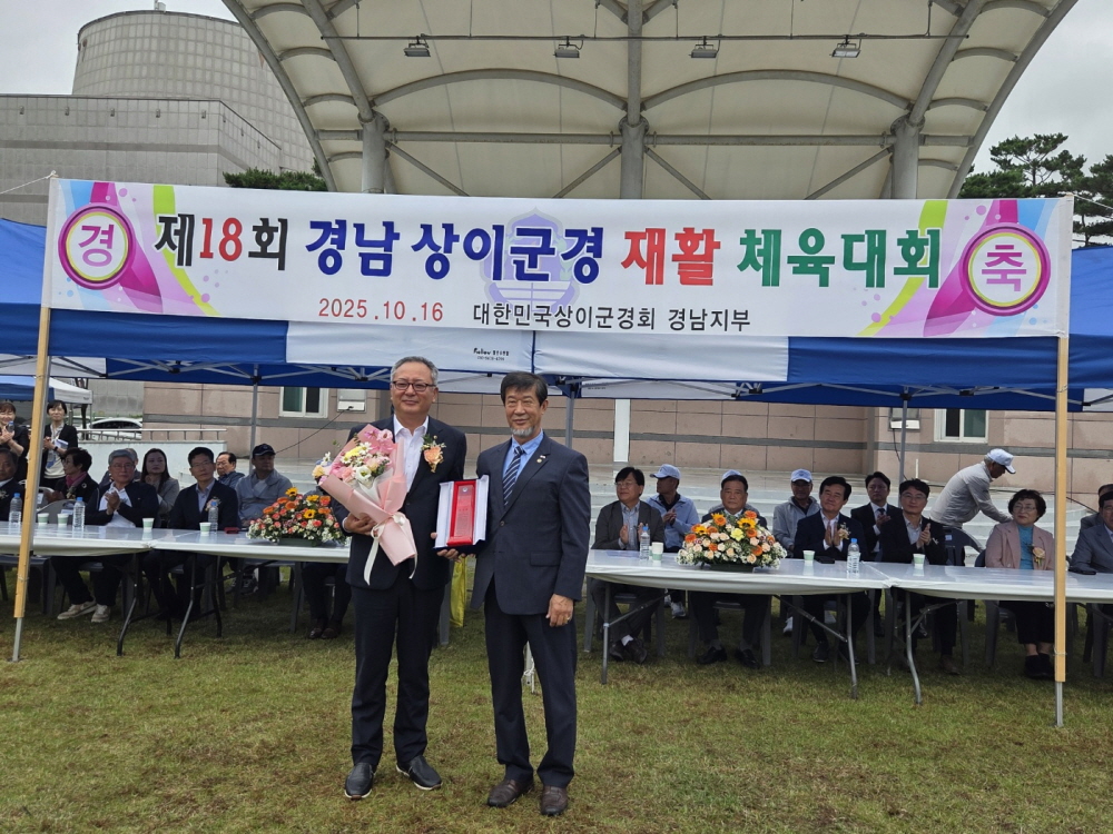 ‘제18회 경남상이군경 재활체육대회’에서..국가유공자 권익 향상에 기여 “현장 중심의 의정활동으로 국가를 위한 희생에 보답하는 정책 펼칠 것” 경상남도의회는 정규헌 의회운영위원장(국민의힘, 창원9)이 국가유공자의 복지증진과 권익 향상에 기여한 공로를 인정받아 대한민국상이군경회 경남지부(지부장 황성원)로부터 감사패를 받았다고 16일 밝혔다. 감사패 전달식은 이날 오전 10시, 함안군 함주공원에서 열린 ‘제18회 경남상이군경 재활체육대회’ 기념식에서 진행됐다. 대한민국상이군경회 경남지부는 감사패를 통해 “정규헌 의원은 평소 국가와 지역사회 발전을 위해 헌신적인 노력을 다해왔으며, 특히 상이군경의 복지 및 권익 향상을 위해 지속적인 관심과 지원을 아끼지 않아 깊은 감사와 존경의 마음을 담아 이 패를 드린다”고 밝혔다. 정규헌 위원장은 “조국을 위해 모든 것을 바치신 상이군경 여러분께 존경을 표하는 것은 당연한 책무인데, 이렇게 큰 상을 받게 되어 영광스러우면서도 무거운 책임감을 느낀다”고 수상 소감을 밝혔다. 이어 “앞으로도 국가유공자 여러분의 목소리를 더 가까이에서 듣고, 그분들의 숭고한 희생이 결코 헛되지 않도록 실질적인 도움이 되는 정책을 펼치는 데 최선을 다하겠다”고 말했다. 한편, 이날 개최된 제18회 경남상이군경 재활체육대회는 경상남도 내 상이군경 회원과 가족들이 참여하여 체육 활동을 통해 재활 의지를 다지고 회원 간의 화합과 친목을 도모하는 행사로서 뜻깊게 진행됐다. 변경출 기자 사진 1...축사하는 정균헌 도의원 사진 2...왼쪽부터 정균헌 도의원, 황성원 경남지부장