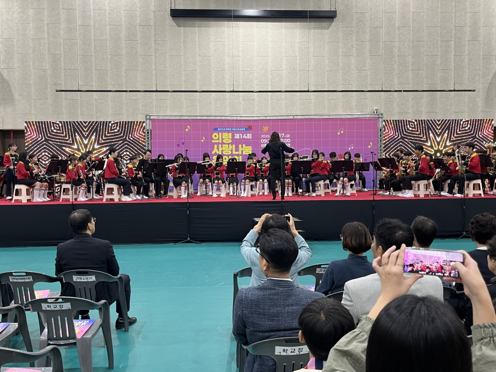 나눔과 화합의 선율로 가을날 풍성한 축제 선사 아나바다 장터와 학교별 특색을 살린 체험 활동 의령교육지원청(교육장 서회영)은 지난 17일 의병문화체육관 및 야외 공간에서 학생과 학부모, 지역민이 함께 어우러지는 ‘제14회 의령 사랑나눔음악회’와 ‘2025. 학부모 나눔장터’를 개최하여 가을날의 풍성한 축제를 선사했다고 18일 밝혔다. 이날 오전에는 ‘의령두레예술단’ 동아리의 아름다운 공연으로 막이 올랐다. 의령두레예술단은 소규모 학교들이 연합하여 운영하는 음악 동아리의 통칭으로, 작은 학교들이 겪는 방과후 교육과정 운영의 한계를 극복하려는 노력의 상징이다. 이는 아주 작은 가능성이라도 함께 붙들면 큰 감동을 나눌 수 있다는 ‘의령 공동학교’의 지향점을 보여준다. 이날 무대에는 관내 유·초·중·고 학생들이 오케스트라, 밴드, 국악, 합창 등 그동안 갈고 닦은 실력을 선보여 깊어가는 가을의 정취 속에서 관객들의 뜨거운 박수갈채를 받았다. 이어 오후에는 의병문화체육관 야외 공간에서 ‘2025. 의령 학부모 나눔장터’가 열려 축제의 열기를 이어갔다. 17개의 부스에서 학부모들이 직접 기획한 아나바다 장터와 학교별 특색을 살린 체험활동이 펼쳐졌다. 학생들이 자원의 소중함과 나누는 기쁨을 몸소 배우는 교육의 장이 되었고, 행사에 참여한 학생과 학부모들은 다양한 활동에 참여하며 소통하고 화합하는 뜻깊은 시간을 보냈다. 서회영 교육장은 “학생들의 꿈과 열정이 담긴 아름다운 공연을 준비해 준 학생들과 선생님, 그리고 나눔과 소통의 장을 열어주신 학부모님들께 깊은 감사를 드린다”며 “우리 의령의 아이들 모두가 삶과 배움, 꿈이 어우러진 행복한 미래를 그려나갈 수 있도록 교육공동체와 함께 적극적으로 지원 하겠다”고 밝혔다. 사진 1...서회영 교육장 인사말 모습 사진 1...관내 유·초·중·고 학생들로 구성된 오케스트라 연주 모습