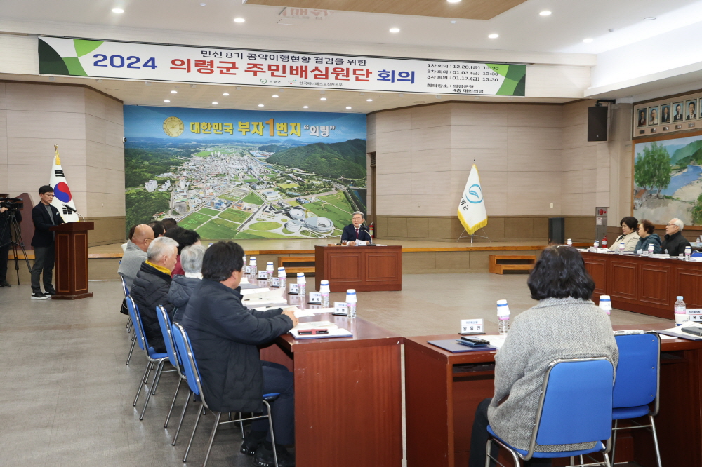 의령군민 누구나 지원 할 수 있어 의령군은 민선 8기 공약 이행 사항을 점검할 ‘주민배심원단’을 모집한다고 22일 밝혔다. 주민배심원단은 지역 문제를 가장 가까이에서 체감하는 군민이 직접 군정에 참여해 공약 이행의 공정성과 투명성을 높이고, 군민과 군수가 소통·공감하는 신뢰행정을 구축하기 위해 마련된 제도다. 의령군은 지난해 경남 군 단위에서는 처음으로 주민배심원제를 도입했다. 배심원은 한국매니페스토실천본부 주관으로 자동응답시스템(ARS)을 통한 무작위 추첨과 전화면접을 거쳐 성별·연령·지역을 고려해 30명이 선정된다. 또한 18세 이상 의령군민이면 누구나 지원할 수 있으며 모집 기간은 11월 17일까지다. 위촉된 30명의 주민배심원은 올해 12월 말까지 민선 8기 54개 공약사업 중 재정여건이나 정책변화 등에 따라 조정이 필요한 공약을 중심으로 토론과 심의 활동을 펼칠 예정이다. 군 관계자는 “군민의 자발적인 참여가 군정의 신뢰성과 투명성을 높이는 원동력”이라며 “공약 이행 과정에 군민 의견이 폭넓게 반영될 수 있도록 많은 관심과 참여를 부탁 드린다”고 말했 다. 사진...주민배심원단 회의 모습