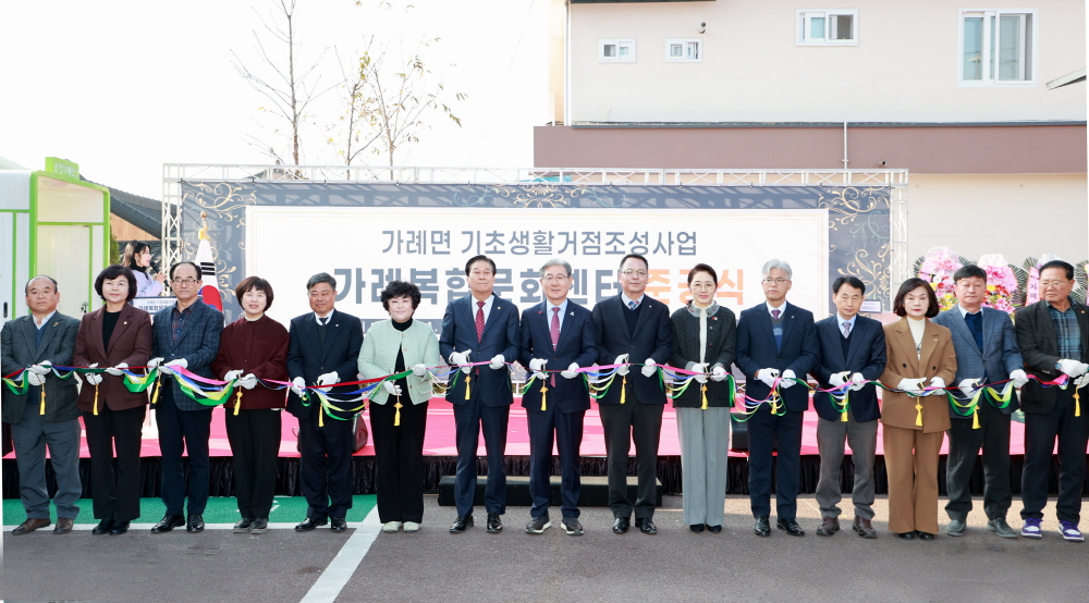 40억 투입 다목적강당 등 2층 규모 의령군은 가례면 기초생활거점 조성사업의 일환으로 건립된 가례복합문화센터(이하 문화센터) 준공식을 개최했다고 27일 밝혔다. 이날 준공식에는 오태완 군수를 비롯해 황성용 문화센터장, 지역 기관·사회단체 관계자 및 주민 등 300여 명이 참석했다. 기초생활거점 조성사업은 농림축산식품부의 일반농산어촌개발 사업으로, 복합 기능 거점을 마련해 생활서비스 접근성을 높이고 지역 균형발전과 정주 여건 개선을 목표로 추진되고 있다. 문화센터는 같은 사업으로 추진된 ‘가례 안심거리 조성’, ‘가례 건강지킴이 조성’과 연계하여 조성된 시설이다. 본 사업은 2020년부터 2025년까지 6년간 국비 28억 원, 도비 3억 6천만 원 등 총 40억 원이 투입되었으며, 이중 센터 건립에 약 27억 원이 집행됐다. 센터는 가례면 의병로 46 일원에 연면적 498.2㎡, 지상 2층 규모로 조성되었으며, 건강관리실과 다목적강당, 작은도서관, 카페 등을 갖추고 있다. 오태완 군수는 “지역민이 함께 소통하며 공동체를 회복하고, 군민 역량을 높여 지역사회에 활력을 불어넣을 것”이라고 말했다. 황성용 센터장은 “다양한 여가활동과 문화예술을 아우르는 다목적 공간이 마련돼 매우 기쁘다”고 소감을 밝혔다. 사진...가례복합문화센터 준공식 모습