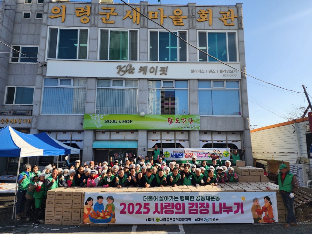 의령군은 새마을운동의령군지회(지회장 황성용)가 새마을회관 앞에서 새마을지도자와 부녀회원 등 70여 명이 참여한 가운데 ‘사랑의 김장 담그기’를 실시했다고 16일 밝혔다.