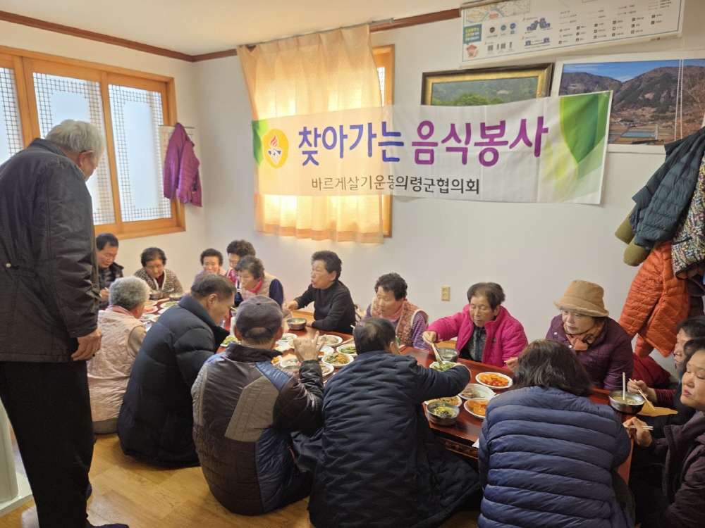 가례면 갑을마을회관에서 어르신 40여명 대상 바르게살기운동의령군협의회는 설 명절을 맞아 가례면 갑을마을회관에서 어르신 40여명을 대상으로 ‘찾아가는 음식 봉사’ 활동을 실시했다고 10일 밝혔다. 이번 봉사는 바르게살기운동 의령군협의회 여성봉사회(여성회장 김숙자)가 주관해 음식을 준비했으며, 여성봉사회 회원들이 정성껏 차린 떡국을 어르신들께 대접하며 따뜻한 명절의 정을 나누는 시간을 가졌다. 협의회 임원을 비롯해 읍·면 위원장, 여성봉사회 회원들이 함께 참여해 음식 준비와 배식, 현장 정리에 한마음으로 힘을 보태며 이웃사랑 실천에 동참했다.