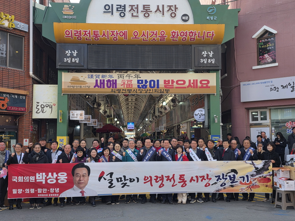 창녕 장기 미준공 도원아파트 사용검사 확인증 교부식 참석, 24년 숙원 해결 주민들께 축하 창녕‧의령 장보기행사 국민의힘 도·군의원과 당협 당직자 동참, 밀양 14일‧함안 15일 이어가 “전통시장 활력이 곧 지역경제 활성화, 현장 고충 담은 실질적 지원책 마련에 최선을 다할 것” 국민의힘 박상웅 국회의원(밀양·의령·함안·창녕, 원내부대표)은 13일 창녕 도원아파트 사용검사 확인증 교부식에 참석한 데 이어, 민족 최대의 명절인 설을 앞두고 창녕전통시장과 의령전통시장을 차례로 방문해 ‘설맞이 장보기 행사’를 열고 상인들과 주민들을 만나 민생 현장을 점검했다. 사업자의 부도로 장기간 사용미승인 상태로 남아있던 창녕 도원아파트는 사용검사 확인증 교부로 24년간 이어진 입주민들의 숙원이 해소되며 정상적인 재산권을 보장받게 됐다. 이어 창녕전통시장에서 열린 ‘설맞이 장보기 행사’에는 박 의원을 비롯해 성낙인 군수, 국민의힘 도의원‧군의원, 당원협의회 당직자들이 대거 동참했으며 의령전통시장에서도 오태완 군수와 국민의힘 도의원‧군의원, 당원협의회 당직자들이 힘을 보태며 행사 현장에 활기를 더했다. 이번 행사는 설 명절을 앞두고 고물가와 소비 심리 위축으로 시름이 깊어진 상인들을 직접 찾아 위로하고, 전통시장의 따뜻한 정을 나누며 지역 소비에 활력을 불어넣고자 마련됐다. 박 의원은 시장 곳곳을 돌며 상인들의 애로사항과 지역 경제 상황에 대한 다양한 의견을 청취하고 시장을 찾은 주민들과도 따뜻한 덕담을 나누며 명절 인사를 전했다. 박 의원은 “단순한 상업 공간을 넘어 지역의 삶과 공동체가 살아 숨 쉬는 소중한 터전인 전통시장을 묵묵히 지켜주시는 상인 여러분께 깊이 감사드린다”며, “전통시장이 활력을 되찾아야 지역 경제도 살아날 수 있는 만큼, 오늘 현장에서 청취한 고충들을 의정 활동에 적극 반영해 실질적이고 피부에 와닿는 지원책 마련에 최선을 다하겠다”고 강조했다. 한편, 박 의원은 2월 14일 밀양 아리랑전통시장, 15일 함안 가야전통시장에서 각각 ‘설맞이 장보기 행사’를 통해 시‧군민들과의 소통을 이어나갈 예정이다. 사진...의령전통시장에서 설맞이 장보기 행사 후 참석자들과 기념 촬영한 모습